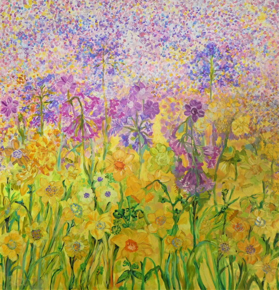 pretty impressionistic daffodil painting on deep boxed canvas